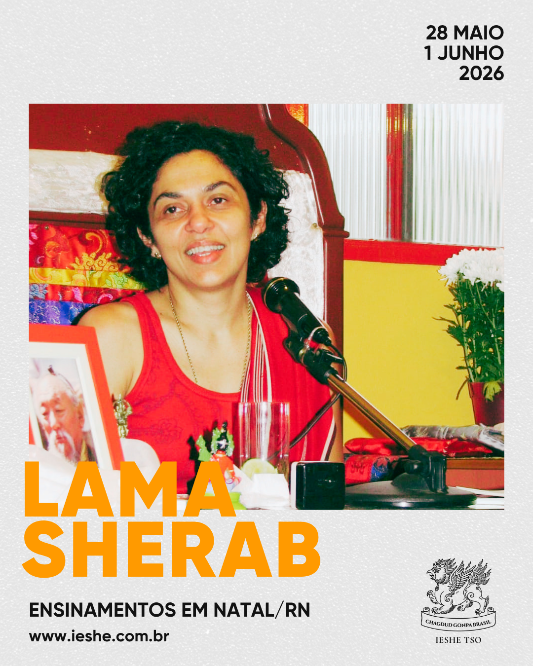 Chagdud Khadro estará em Natal entre os dias 29 de setembro e 02 de outubro de 2022. Veja a programação: